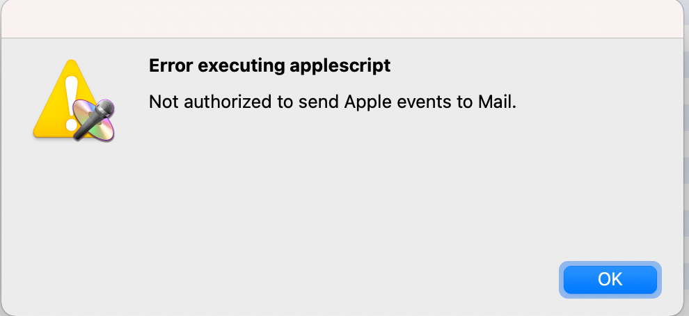 "not auth...to mail" dialog shows.