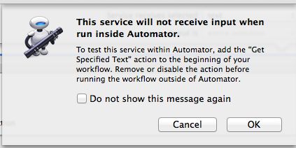 Again, as I wrote, the action should receive "no input", NOT "text", and the selected application should be the version of kJams you are using, not "any application".