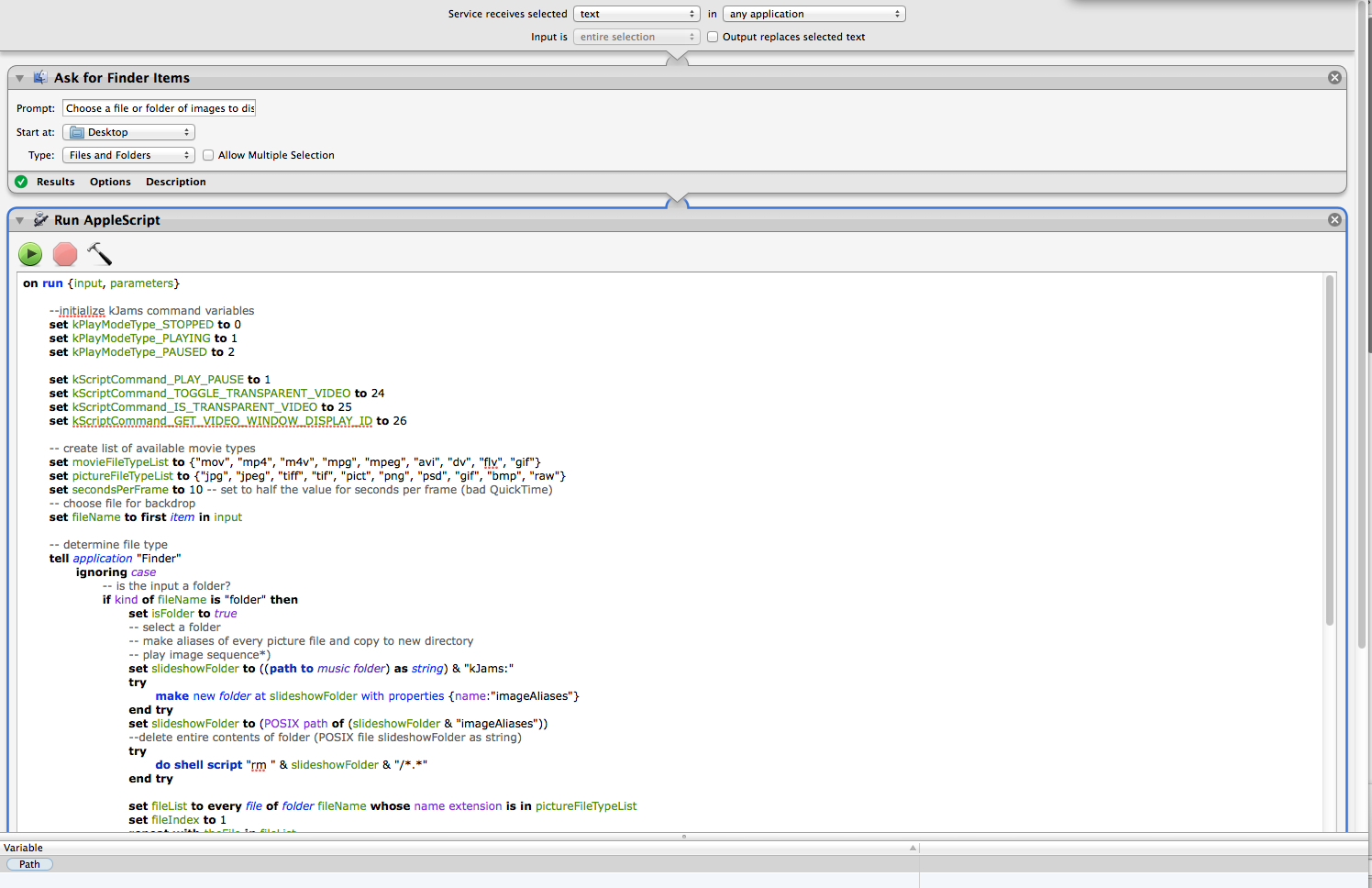 -- The following should really be -> open image sequence (slideshowFolder as string) & "/image1." & the name extension of the first item of fileList seconds per frame secondsPerFrame (if Quicktime was not hopelessly broken!)